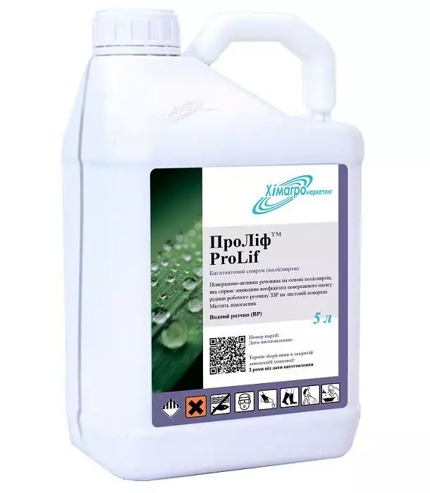 Механизм действия препарата: за счет смеси поверхностно-активных веществ значительно уменьшается коэффициент поверхностного натяжения рабочего раствора и улучшается качество проникновения и смачивания обработанной листовой поверхности. Способствует лучшему прилипанию и отсутствию стекания пестицидов. За счет свойства ПАВ рабочий раствор образует тонкую пленку на листовой поверхности, что улучшает эффект работы всех групп СВР. При обработке семян протравителями с использованием препарата ПроЛиф, обеспечит максимальное покрытие и предотвратит стекание из обработанных семян.