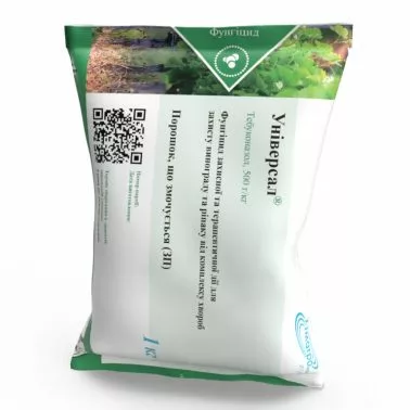 Форма препарата и действующее вещество: Смачивающийся порошок с содержанием тебуконазола, 500 г/кг. Химический класс: Триазолы. Упаковка: Пакеты по 1 кг. Период защитного действия: 12-21 суток. Механизм действия: Быстро проникает в растение через ассимилирующие части и равномерно распространяется ксилемой. Универсал подавляет биосинтез эргостерола, предотвращая образование клеточных мембран патогенов и нарушает процессы метаболизма, что приводит к гибели патогена и обеспечивает быстрый эффект. Свойства и преимущества: