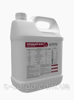 Урожай Бор — концентрированный раствор бора (B) в доступной для растений форме боретаноламину, для подкормки культур, чувствительных к недостатку элемента: сахарная свекла, рапс, соя, подсолнечник, бобовые. Гумат в составе препарата улучшает проникновение Бора в ткани растения.
