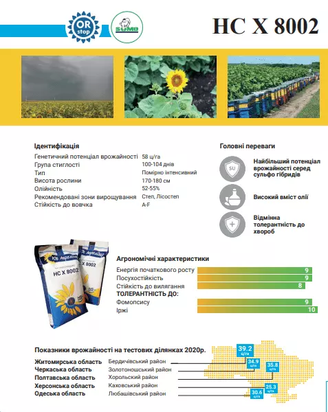 Стійкість соняшника НС Х 8002 до хвороб і стресових факторів:
